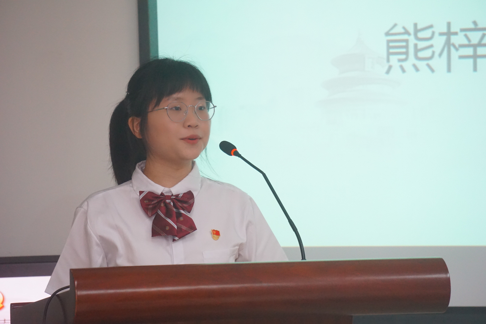 接着,毕业生党员代表熊梓怡发言,她分享了自己的入党初心和大学经历,勉励同学们追寻自己的人生目标时永葆初心并代表毕业生党员们对广外的培养、老师的殷殷教诲、同学的陪伴表示感谢。最后,她祝愿各位毕业生能胸怀理想,砥砺前行,成为更加优秀的自己,为母校增添光彩。