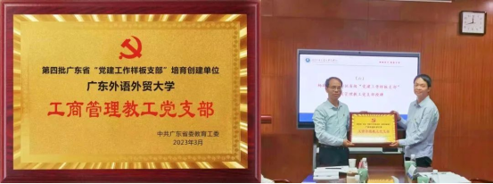 工商管理教工党支部对标新时代党的建设总要求,坚持“立德树人”根本任务,以“培养高质量国际化新商科人才”为使命,以成为国际化特色鲜明高质量工商管理专业和华南地区创新人才培养示范区为愿景,致力于培养具有家国情怀、专业知识、心智技能、实践能力和国际视野的“五星”能力体系的高质量国际化商科人才,打造“三型”筑基、“双创”争先的组织机构与队伍,践行“头雁”引领、“众雁”支撑的工作体制与机制,坚持思想政治的核心作用,发挥党建对专业学科发展引领作用以及对师生凝聚的主导作用。近年来,支部先后获评大学先进基层党组织、党建工作样板支部、“三型”党支部等多项荣誉,入选大学基层党支部组织生活创新案例;支部党员获评“阐释党的十九届五中全会精神”国家社科重大项目首席专家、广东省优秀社会科学家、广东省教学名师、广东省高等学校优秀青年教师,入选教育部工商管理教学指导委员会委员、广东省工商管理教学指导委员会委员等。