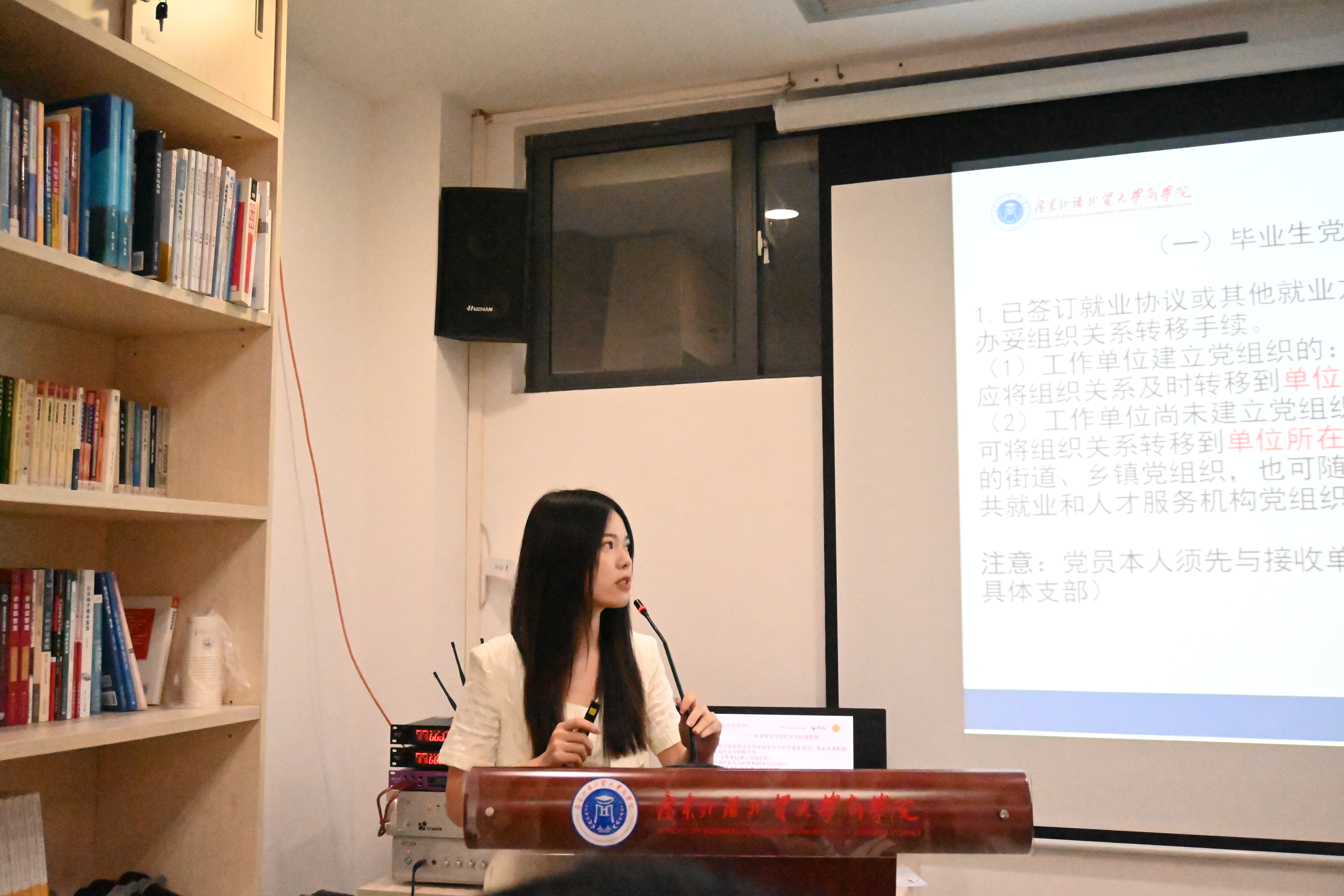 随后,向媛薇详细地讲解了组织关系转接的有关原则和办法。她还强调毕业生党员们要增强组织观念,高度重视并落实组织关系转接事宜。她希望毕业生党员们秉承校训精神,展现广外商院学子的良好风貌,怀揣梦想前行,拥抱时代之变。