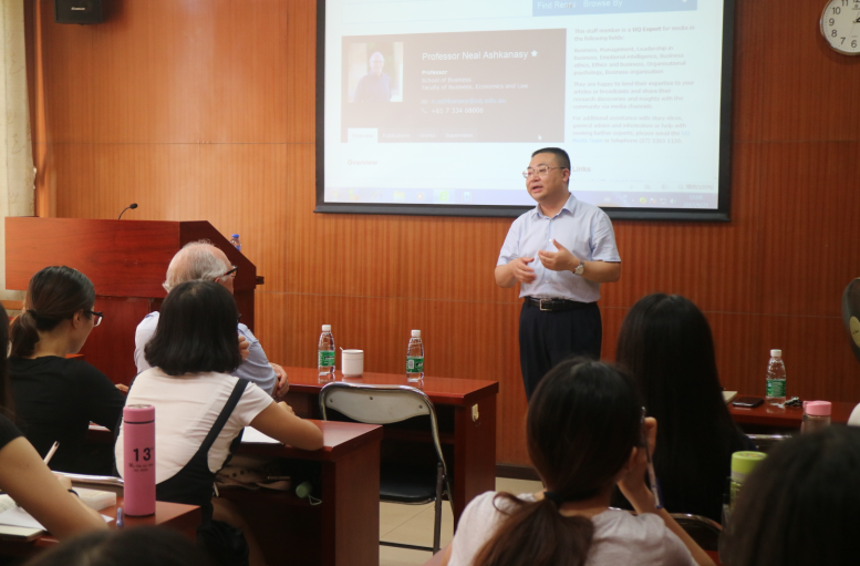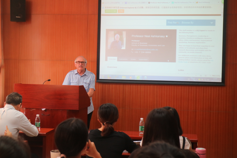 2017 日9月25日下午,澳大利亚昆士兰大学bevictor伟德NealAshkanasy 教授与bevictor伟德师生分享了What does it take to become a successful OB scholar,陈国海、安凡所等教授以及bevictor伟德硕士研究生参加了本次学术讲座。讲座由bevictor伟德副院长袁登华教授主持。