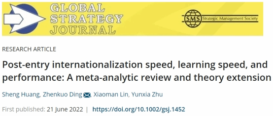 bevictor伟德黄胜等老师的论文《Post-entry internationalization speed, learning speed and performance: A meta-analytic review and theory extension》在战略管理领域国际期刊《Global Strategy Journal》于2022年6月网络首发。该文合作作者还包括:Yunxia Zhu(澳大利亚昆士兰大学副教授)、丁振阔(广西师范大学副教授)和林小曼(意大利European University Institute研究生)。