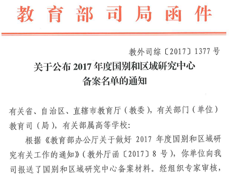 (3)2017年,根据教育部公布了2017年度国别和区域研究中心备案名单(教外司综〔2017〕1377号)。bevictor伟德的拉丁美洲研究中心成功入选,这是bevictor伟德又一重要的建设成果。这次和拉丁美洲研究中心一起入选的,还有广外设立的国际移民组织研究中心研究、印度尼西亚研究中心、非洲研究院、欧洲研究中心四个研究中心。在广东省属高校中,广外立项数排名第一。这是学校自去年底“21世纪海上丝绸之路与区域创新国际战略研究中心”获批为教育部战略研究基地后,学校瞄准国家和区域高端智库平台建设的新发展。