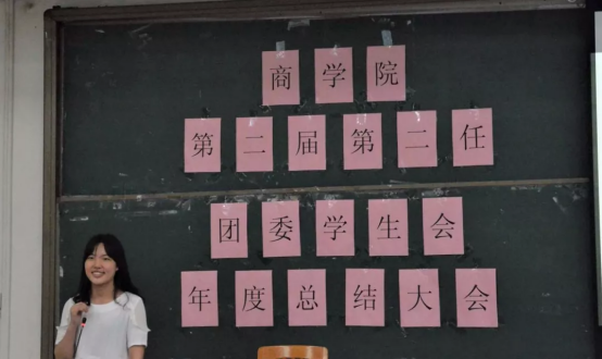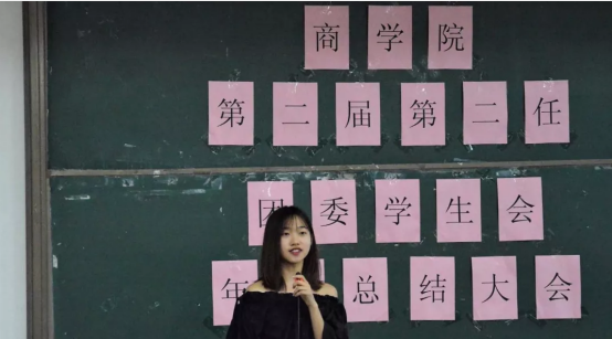 接下来是部长发言环节。第一位代表发言的部长是外联部部长冯楚仪,她在会上向我们分享了外联部的slogan:“We”,not “Me”。去年作为干事的她认为这是“团队的力量”,而今年站在部长的角度,她认为这是一种“团体意识”和“自我意识”,在这一年来,她收获了很多。最后,她也表达了她对杨欣老师、副主席以及其他部长的感谢,并且表达了对外联部的所有干事的感谢:“谢谢见证我们的成长,也谢谢让我们见证你们的成长”。第二位上台发言的是学术与国际交流部的部长李欣,她表示:“在团学的两年来,因为值得,所以未曾后悔过”。她建议所有即将留任的干事们,无论以后遇到什么困难,不要急着否定自己,先想办法去克服困难,同时,她也祝福所有没有选择留任的小朋友,希望他们能找到自己的道路,继续发光发热。第三位代表发言的是实践部部长赖冬梅,作为“自带妈妈属性”的她希望所有人都能学会“换位思考”,并且建议:作为小团队里的一员,要少点抱怨,多点责任,最后,她由衷感谢了所有和她一同成长的搭档和小朋友们,并祝愿所有人再今后的生活中都能更加开心快乐。