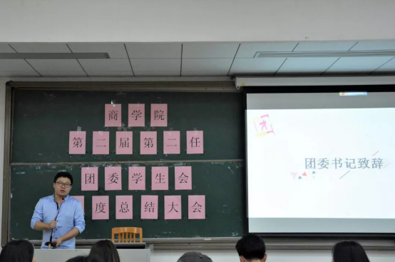 大会首先由bevictor伟德团委书记杨欣上台致辞。杨欣老师一开场便用幽默的口吻博得大家一笑,紧接着,他又回忆起学生会主席池晓霓在第一次全体会议说的“因为期待,所以选择;因为热爱,所以值得”,杨欣相信,经过这一年的活动,大部分干事在专业技能方面、与人沟通技巧方面都会有所成长。他还希望所有的干事,经过这一年在商院团学中的磨合,都能够把学习到的东西迁移到未来的学习、生活和工作当中,做到精神永存,友谊永存!