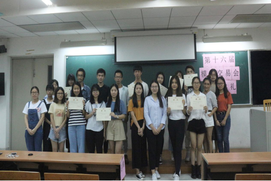 随后,活动迎来了隆重的模交颁奖环节,学生会主席原泳坚为第十六届模拟交易会中获奖的队伍进行颁奖。本次模拟交易会共有六支队伍获奖,其中Swatch(中国)Passion系列团队获得一等奖,一涂创意团队和陶之夭夭获得二等奖,工匠、齿佳有道队和传+保获得三等奖,一涂创意团队获得最佳广告视频奖。而荣获最具眼光客商团的有:由陈淑漫、杨心妮、钟璇妍、黄乙涵组成的f8客商团以及由庄婉韵、高桂萍、叶沛鑫组成的f9客商团。