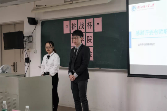 在项目展示环节,选手们通过丰富多样的ppt以及自信流畅的表达,完美呈现自己的项目成果。在后续答辩环节中,面对评委们的各种犀利提问,选手们也凭借着自身过硬的心理素质及掌握的专业知识,冷静作答,展现出商院学子们实事求是的科学态度与严谨端正的学术作风。