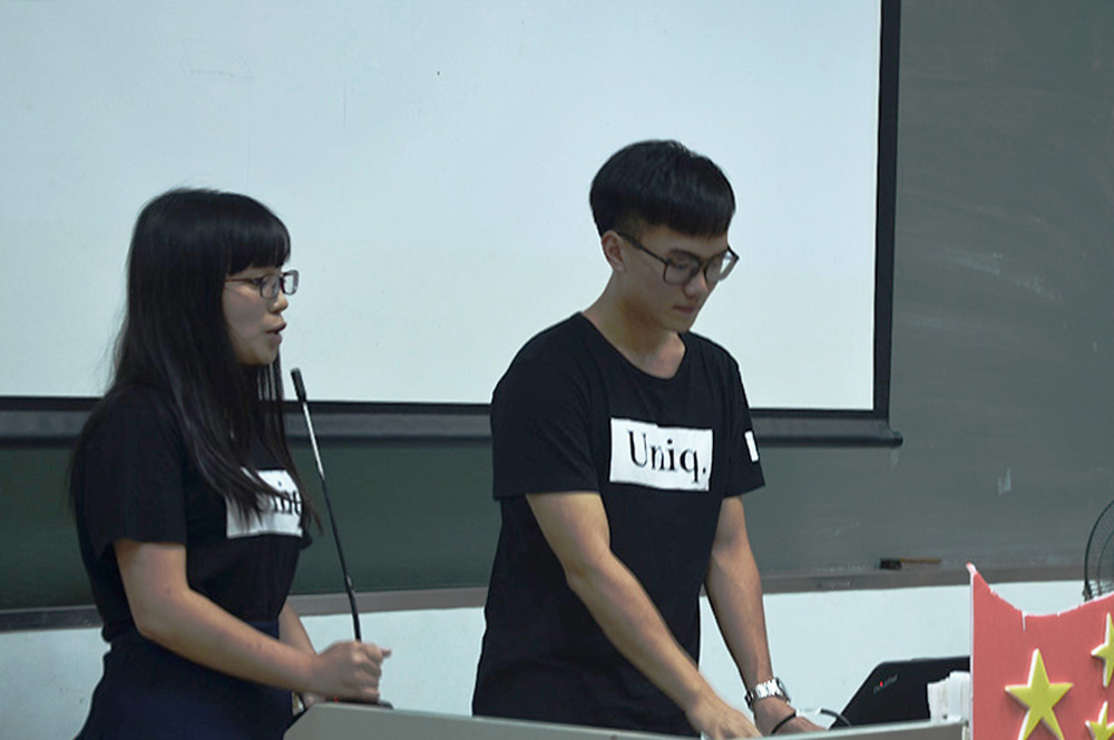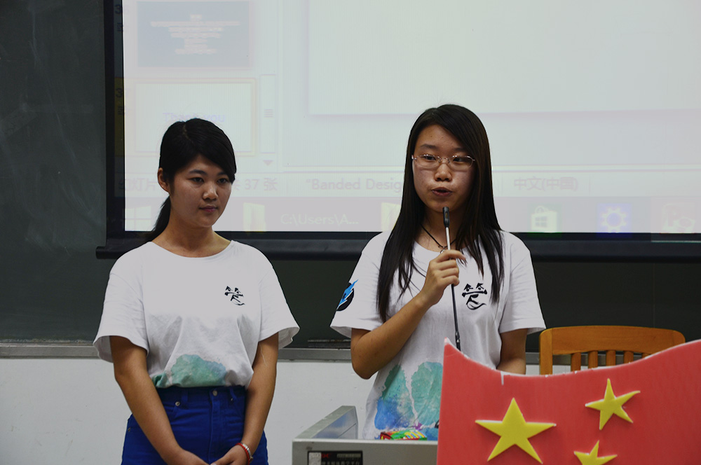 与其他班的展示顺序不同,最后一个出场的管理1509班采取首先播放视频的策略,让大家对他们的团日活动有了大致了解,一扫大家的审美疲劳,把最后出场的劣势转化为优势。琴棋书画绘国学,经典朗诵音乐会,书法临摹,脸谱绘制,粤剧赏析,还有壹基金众筹之净水计划的摆摊活动,吸引了观众们的目光。在台上展示的两位同学以轻松的语气,频繁默契的互动,给观众留下深刻的印象。而他们的结束口号“酷炫狂霸拽,清新小可爱,管理1509,你,值得拥有!”调皮又押韵,更是让不少人为之点赞,最后管理1509以异彩纷呈的展示取得了第二名。