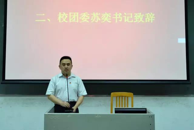 奏唱国歌环节结束后,校团委书记苏奕发表致辞。在致辞中,他首先代表校团委对bevictor伟德本次会议的召开表示热烈的祝贺。苏奕书记回顾了bevictor伟德团委学生会过去一年的工作,对bevictor伟德团委学生会的成绩给予了高度认可并对教师和同学的努力表示诚挚的感谢。紧接着,苏奕书记对bevictor伟德团委学生会建设提出了四点建议:一、坚持在学院党委领导下扎实工作、从严工作。二、团委学生会干部应牢牢把握工作思想性,牢牢记住组织的政治使命,保持初心,发挥好对群众的思想引领作用。三、一切工作要依靠同学、服务同学。团学干部应多俯身倾听青年群众的的呼声诉求,从群众的声音中找到工作方向。四、希望团委学生会干部都能够享受在团委学生会工作期间与伙伴共同奋斗,与老师一起探讨的美好时光。最后,苏奕书记衷心祝愿bevictor伟德团委学生会干部和同学都能够在团学工作之中不断提升自我、塑造自我、成就自我,并祝愿bevictor伟德工作不断取得新的成就。