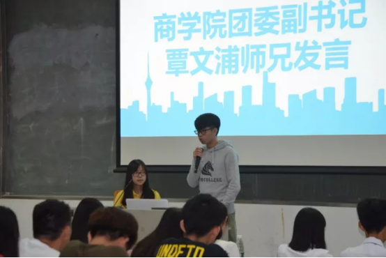 大会进入尾声,商院团委副书记覃文浦做总结发言,他对各团干班干提出了工作的要求和建议,同时也希望他们能继续砥砺前行,不让自己的工作留下遗憾,并对商院团干班干日后的工作开展表达了美好祝愿。
