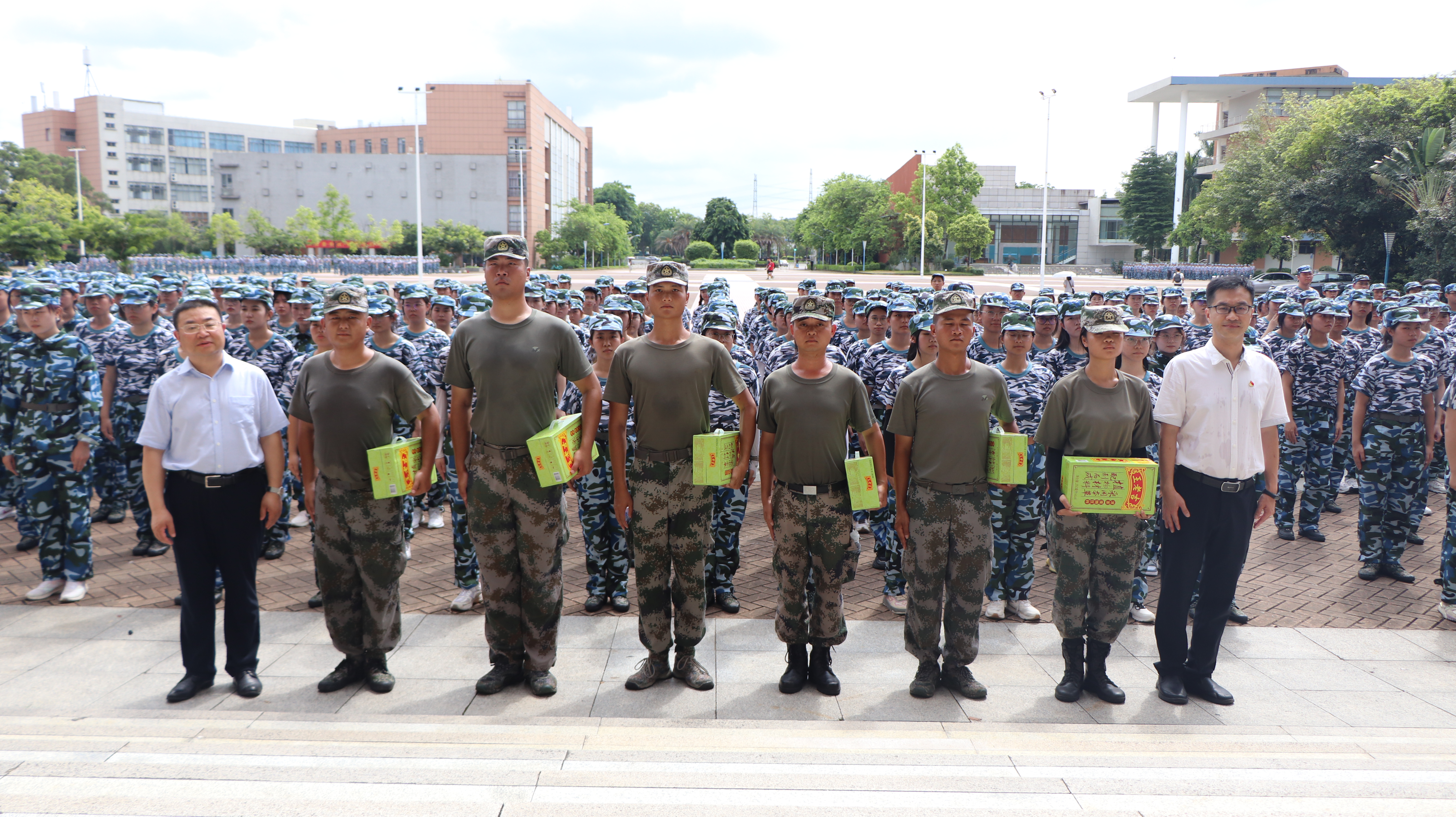 最后,学院领导班子为教官与学生赠送精心准备的慰问品。此次慰问活动体现了学院对军训工作的高度重视,给同学们带来温暖和力量,同时,也激励着同学们以更加昂扬的斗志参加训练。同学们备受鼓舞,纷纷表示将以更加饱满的热情投入训练,强健身体素质,磨炼意志品质,练就过硬本领。