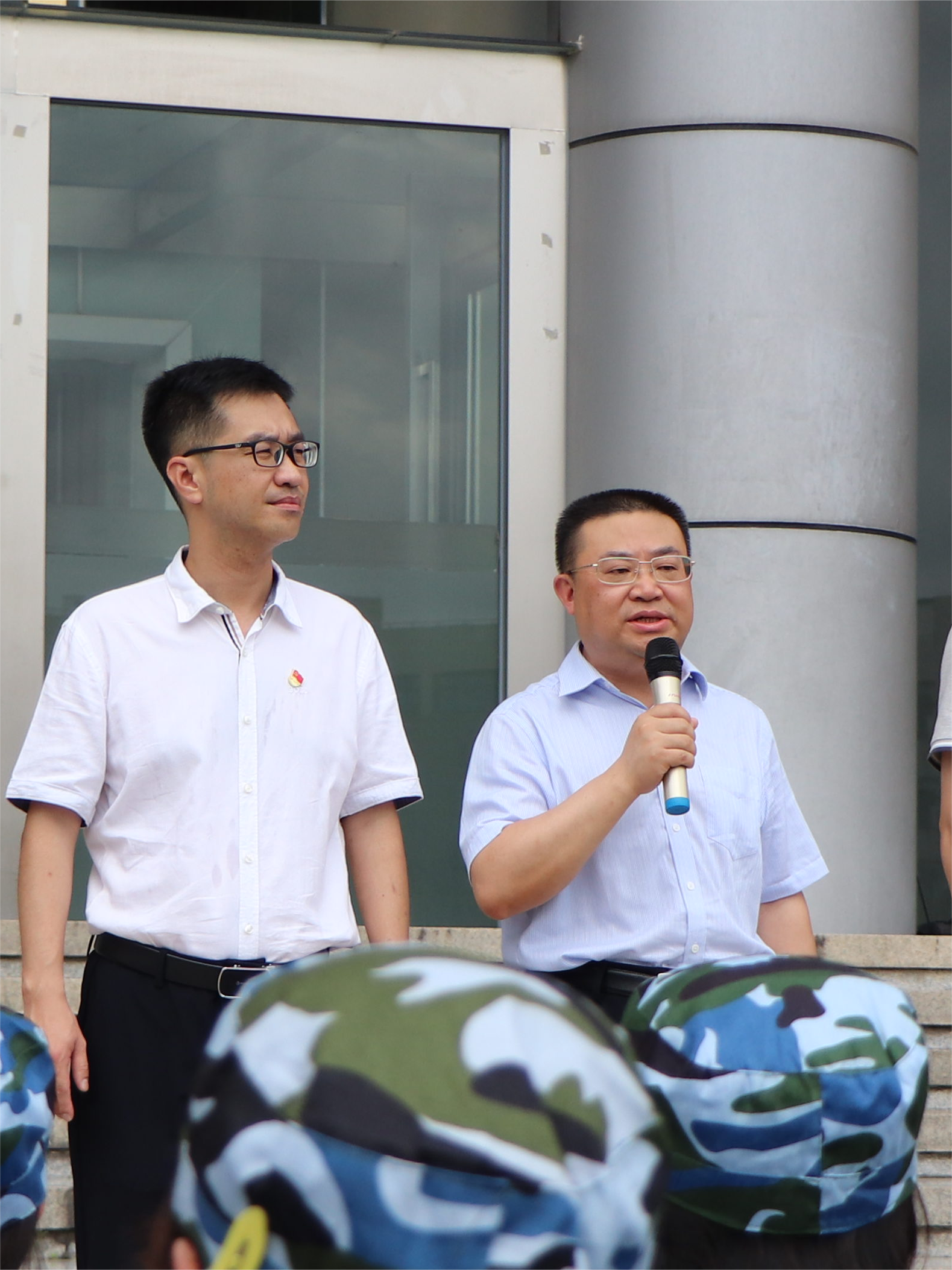 首先,袁登华代表学院对辛苦训练的教官和同学们表示真切的慰问。他用“大学和人生的必修课”强调了军训的重要性,勉励同学们发扬艰苦奋斗精神,努力学习国防知识,在训练中增强集体意识与纪律意识,全面提高自身综合素质。同时,不断涵养家国情怀,坚定跟党走的步伐,牢固树立“强国有我”的信念,遵从校训,践行社会主义核心价值观,立志成为一名国际化高端商科人才,为学院争光添彩,为祖国贡献青春力量。最后,他希望同学们全身心投入训练,认真上好大学“必修课”,在军训中收获成长。