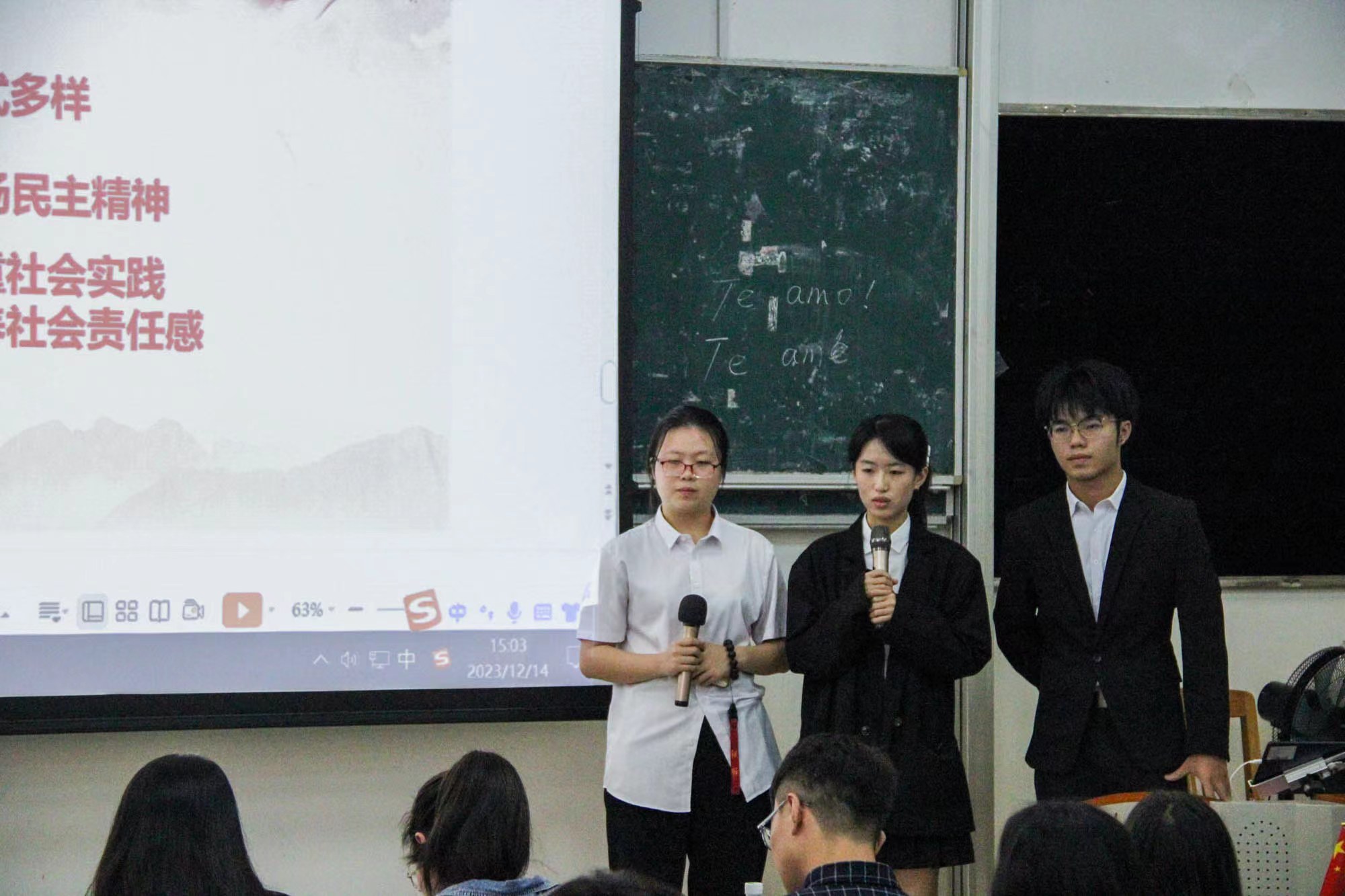 2023年12月14日下午,bevictor伟德2023-2024学年第一学期主题团日活动展示报告会于大学城校区教学楼F215顺利举行。校团委专职团干李新璐,bevictor伟德团委书记张哲、2023级辅导员秦雨,bevictor伟德团委副书记黄冰、学生会执行主席刘笑君,展示团支部代表和各年级学生参加会议。