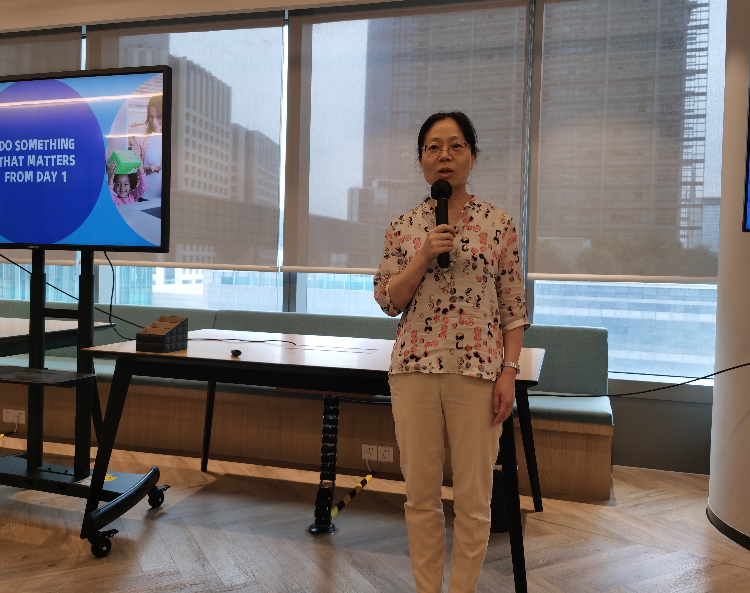 活动最后,沈长霞就此次参访活动作总结发言,她对宝洁公司的热情接待表示感谢,肯定了广外校友在宝洁展现出的良好风貌和宝洁员工身上的闪光点,并对进一步的深入合作表示期待。她指出,本次校企开放日是一次难得的参观、交流和学习的机会,希望同学们向优秀校友学习,进一步明确未来发展目标,不断夯实专业知识,提升自身综合素质,争取在未来的就业市场中脱颖而出。