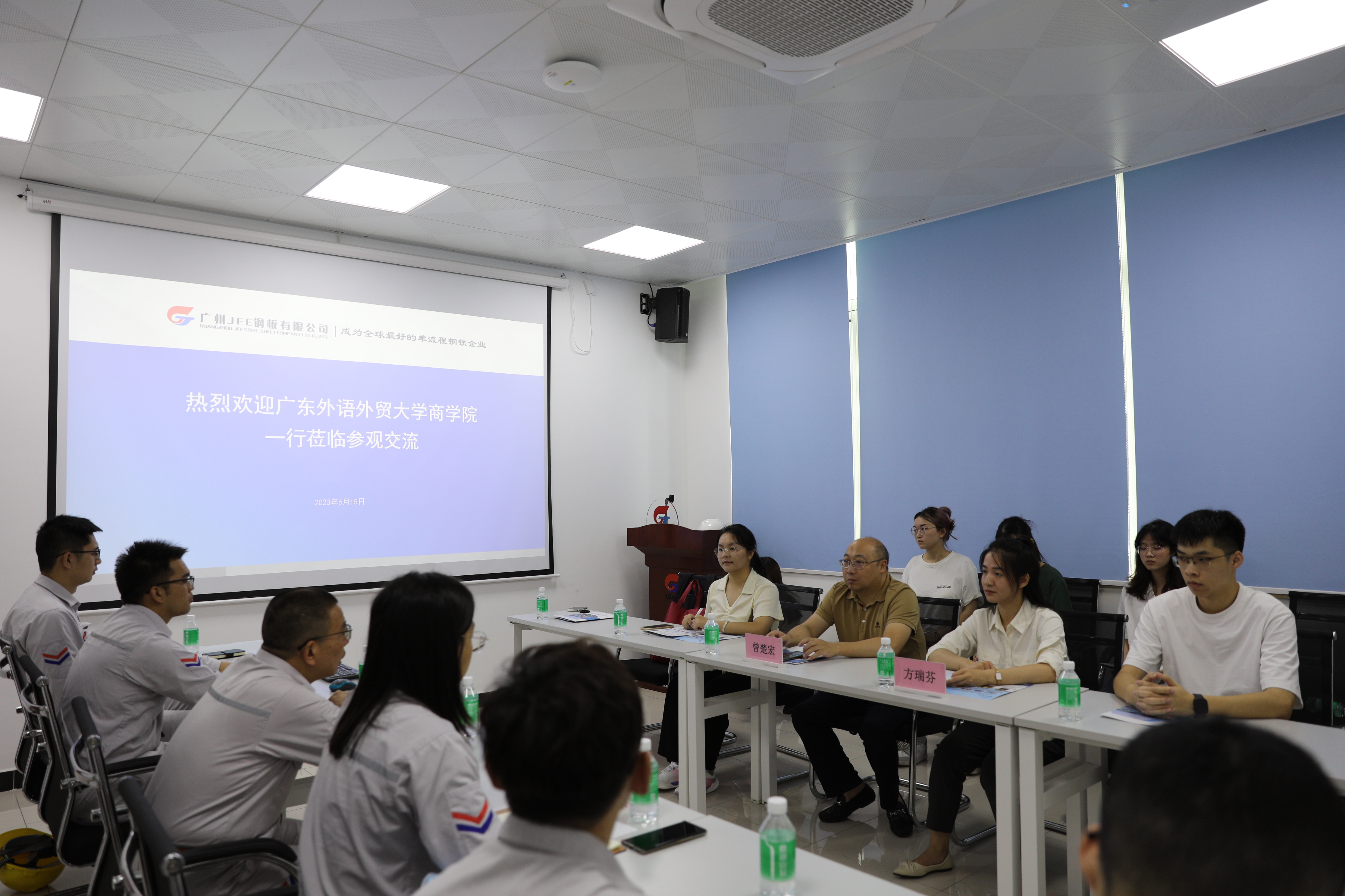 广州JEF钢板有限公司党委书记黄远春对bevictor伟德师生的到来表示热烈欢迎,详细介绍了广州JFE钢板有限公司的建立、发展、壮大的一系列过程,阐述了其产品的种类、生产加工过程。随后,曾楚宏院长介绍了学院情况,也对双方未来的合作交流进行了探讨。