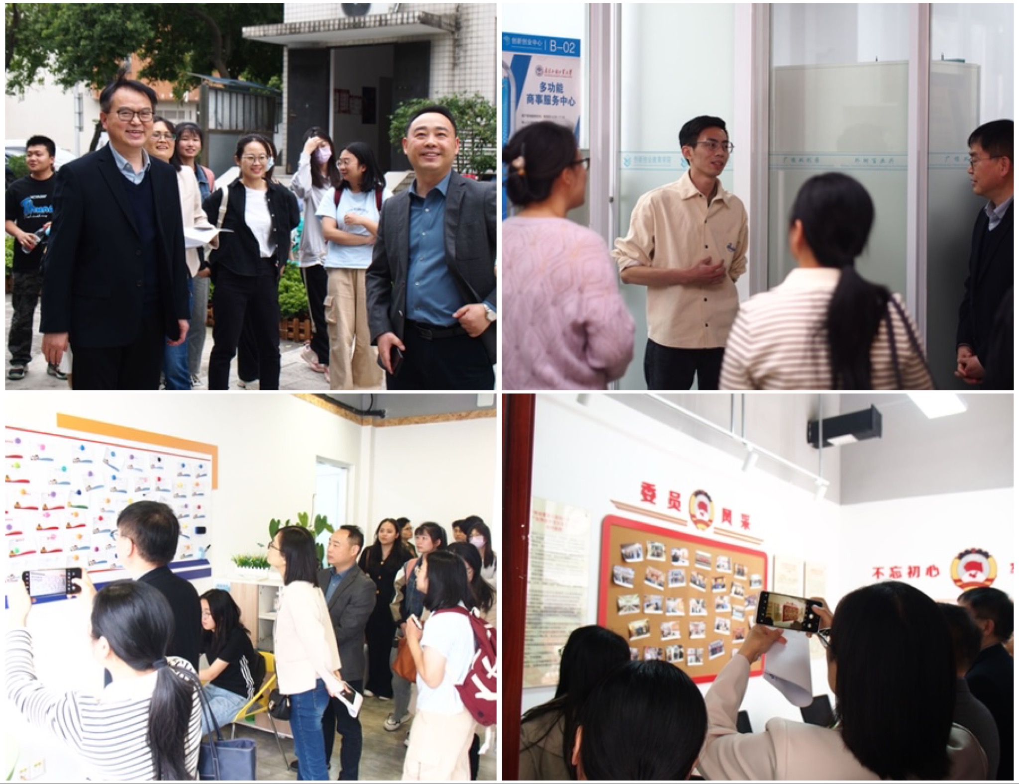 曹婷婷带领广东科技学院师生一行实地参观了bevictor伟德国家级实践基地,走访各功能活动区域、多功能商事服务中心及学生创新创业团队办公室,并与bevictor伟德学生创新创业团队“掘金巴西”与“木木科技”进行深入交流。调研组对bevictor伟德学生团队结合专业特色和广外优势学科开展创新创业实践的做法给与了充分肯定。
