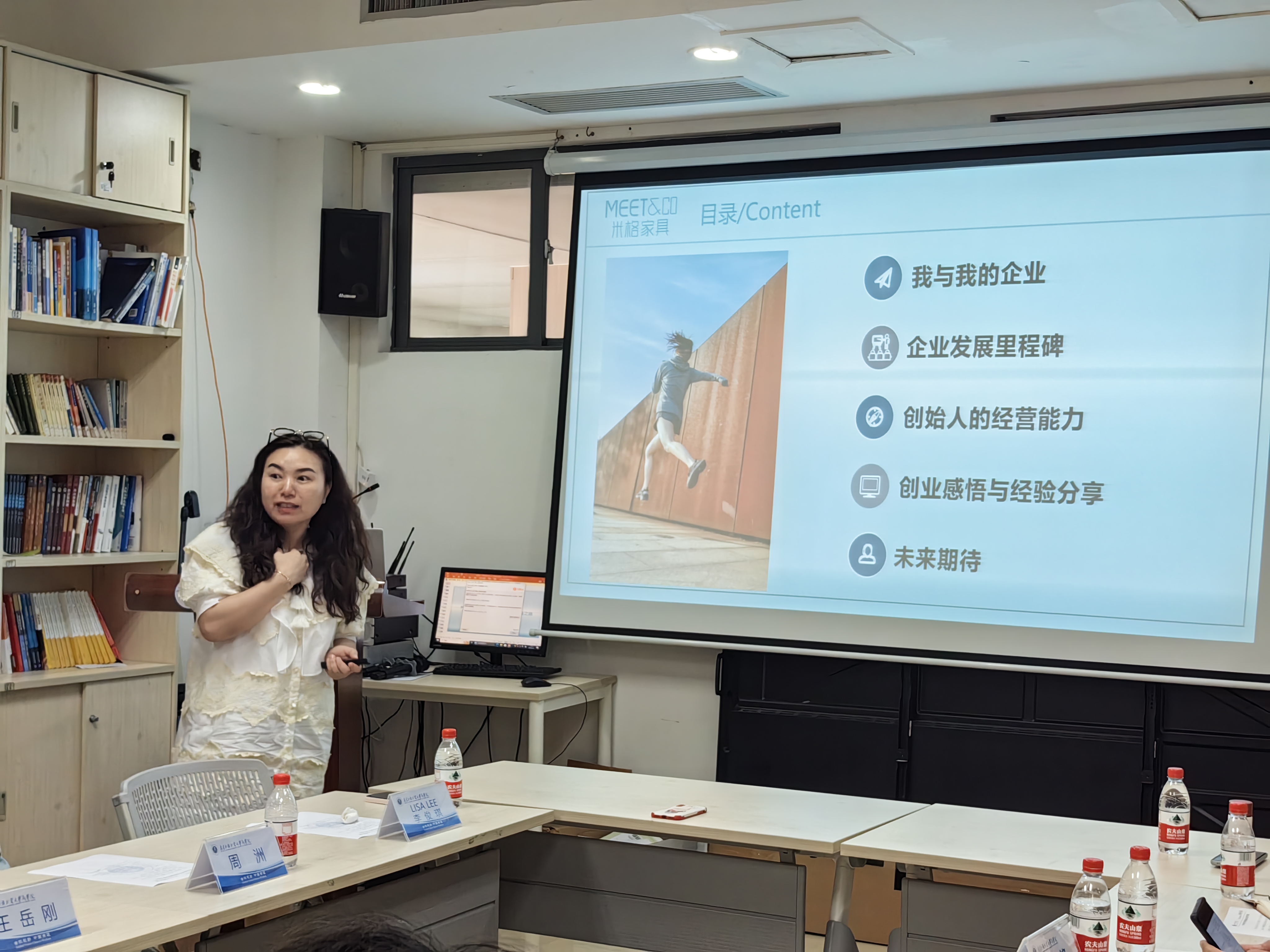首先,米格家具创始人李俊琪女士以独特的视角,分享了家具行业的现状与未来趋势,同时也分享了自己的创业历程,如何从0到1再到100,如何做一家有温暖的公司。宝贵的分享为同学们提供了更多元化的职业经验和视野。