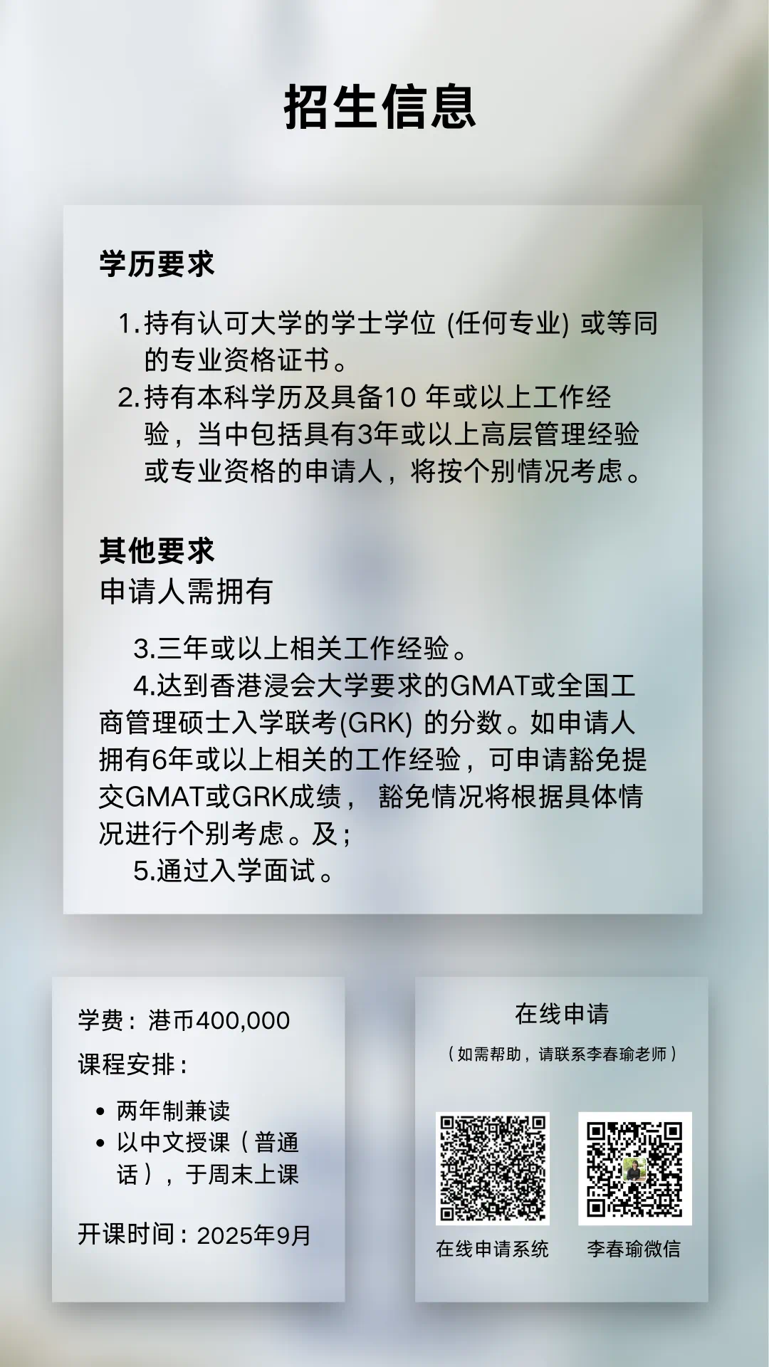 香港浸会大学MBA(工商管理硕士)广州班2025年招生简章