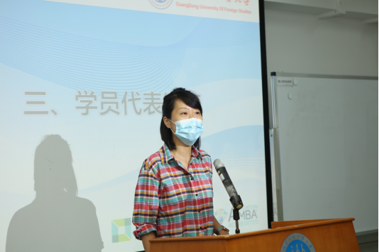 随后,学员代表杨华对即将开始的MBA学习发表感言。在讲话中她提及了选择就读于香港浸会大学MBA广州班的原因。“虽然我们来自五湖四海、不同行业,但是我们都朝着同一个价值、同一个梦想努力地前进着,那就是成功。”——这不仅代表着学员杨华个人坚定的理想信念,也代表着2020级学生们刻苦、进取的求学精神。