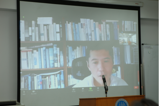 因疫情原因,香港浸会大学副院长黄旭通过线上会议的方式就开班动员发表了讲话。他表达了由于疫情原因无法与同学们面对面交流的惋惜,并表示在疫情的情况下,同学们更应该积极地求学,努力地向更高处发展。