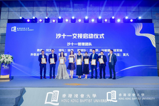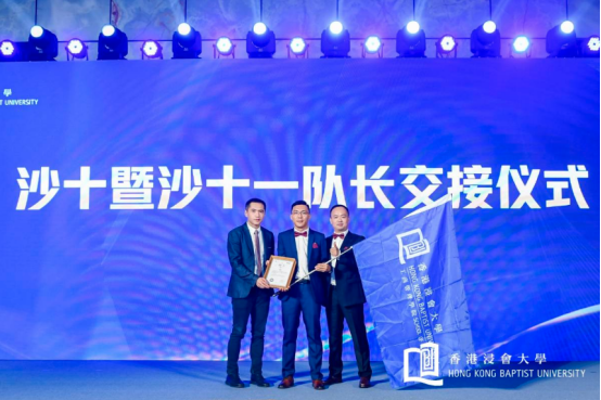 薪火相传,再创辉煌。沙十暨沙十一队长交接仪式引爆祝捷晚会的全场高潮。黄旭为浸大MBA广州班徐伟颁发沙十一领队的聘书,徐伟从沙十领队朱发平手中接过旗帜,传承了勇于挑战的精神,也肩负着再创辉煌的使命。