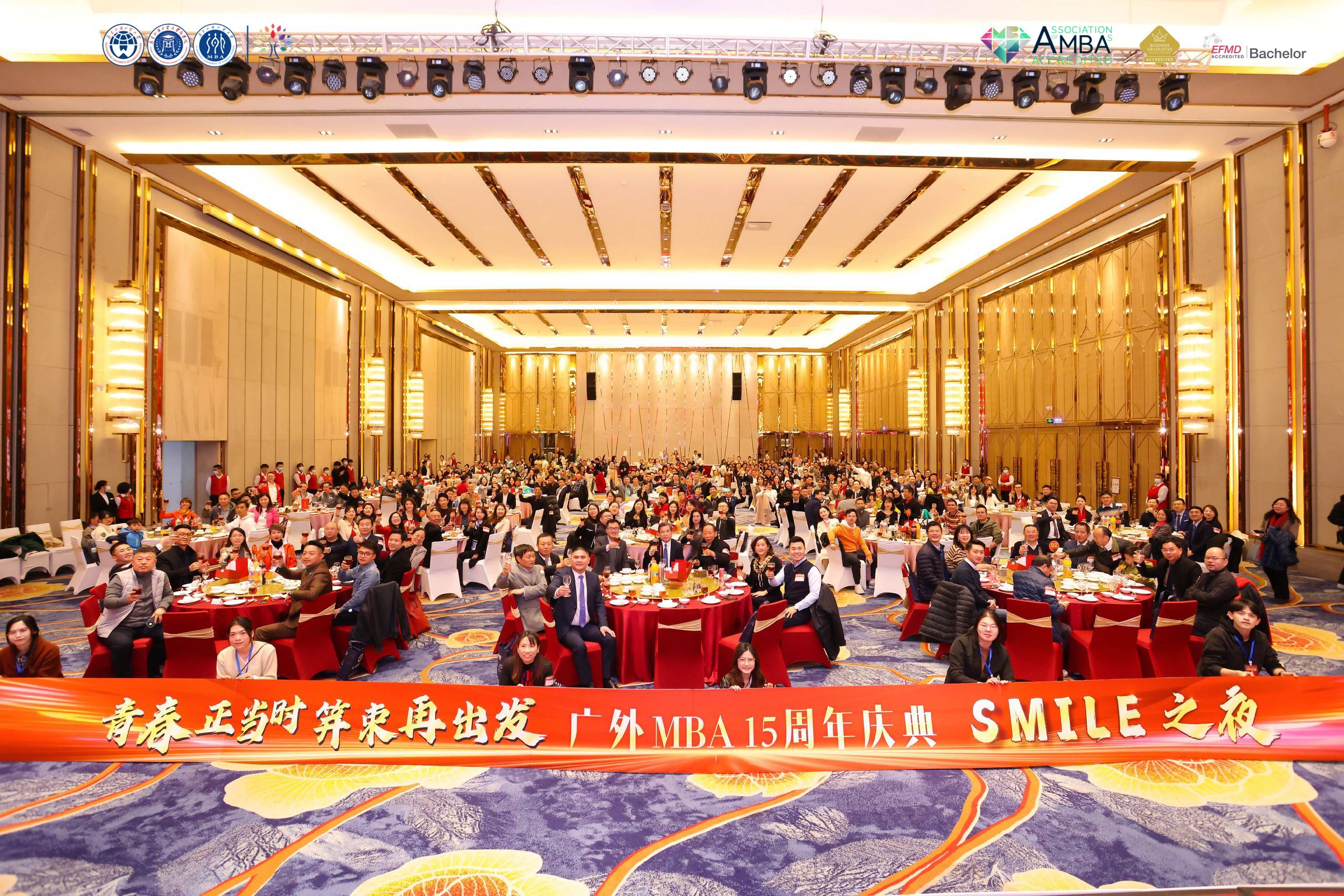 SMILE之夜活动吸引了500余人参加,黄磊、孙建军和朱文忠作为MBA项目历任领导致辞并获聘为MBA荣誉顾问。晚会期间还举办了MBA业界导师、MBA校友会第四届理事会和第十五届MBA联合会聘用仪式。由MBA师生带来的节目精彩纷呈,优美的舞姿,展现了广外MBA十五年的润物细无声;悠扬的歌声,述说着同学们对未来的向往与期盼。