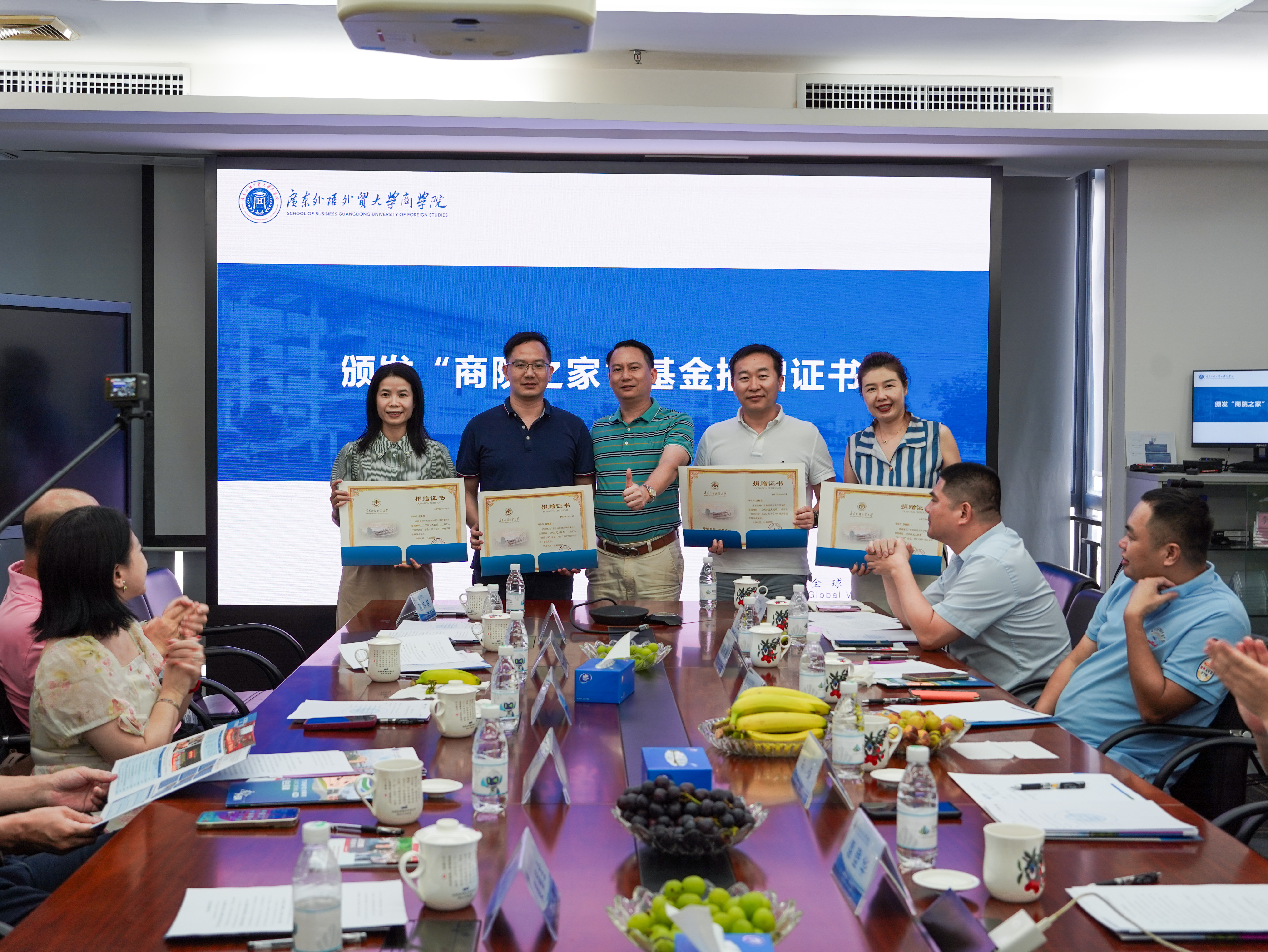 接着,林明汇报了“商院之家”基金的运作情况,并提出了基金未来发展的规划。会议审议并通过了“商院之家”基金管理委员会名单,同时现场颁发“商院之家”基金捐赠证书。