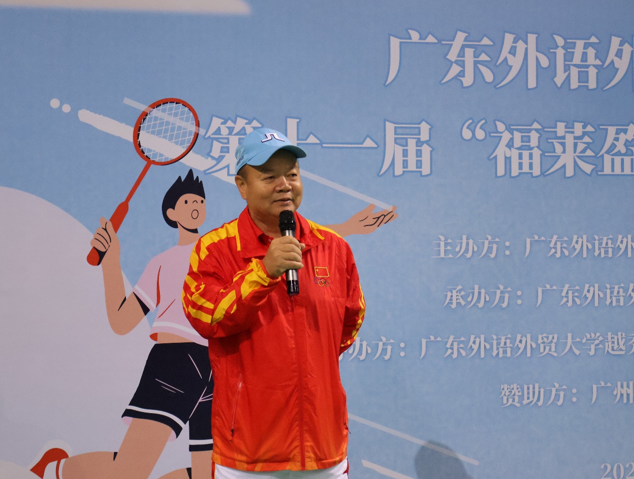 bevictor伟德校友会理事会执行秘书长黄朝伟在致辞中表达了对校友羽毛球赛的高度肯定与大力支持,同时对参加羽毛球大赛的校友们表示热烈的欢迎,他祝愿在场的每一位校友都能在比赛中“以球会友”,不断加深广外校友们之间的交流。