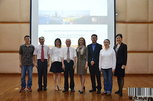 讲座结束后,在座嘉宾与观众一起合影留念。几名同学表示,希望以后能多举办这种既具有国际化视野又贴近学生专业知识、同时富有实践意义的讲座,让广外真正发展为一所国际化特色鲜明的高水平教学研究型大学。