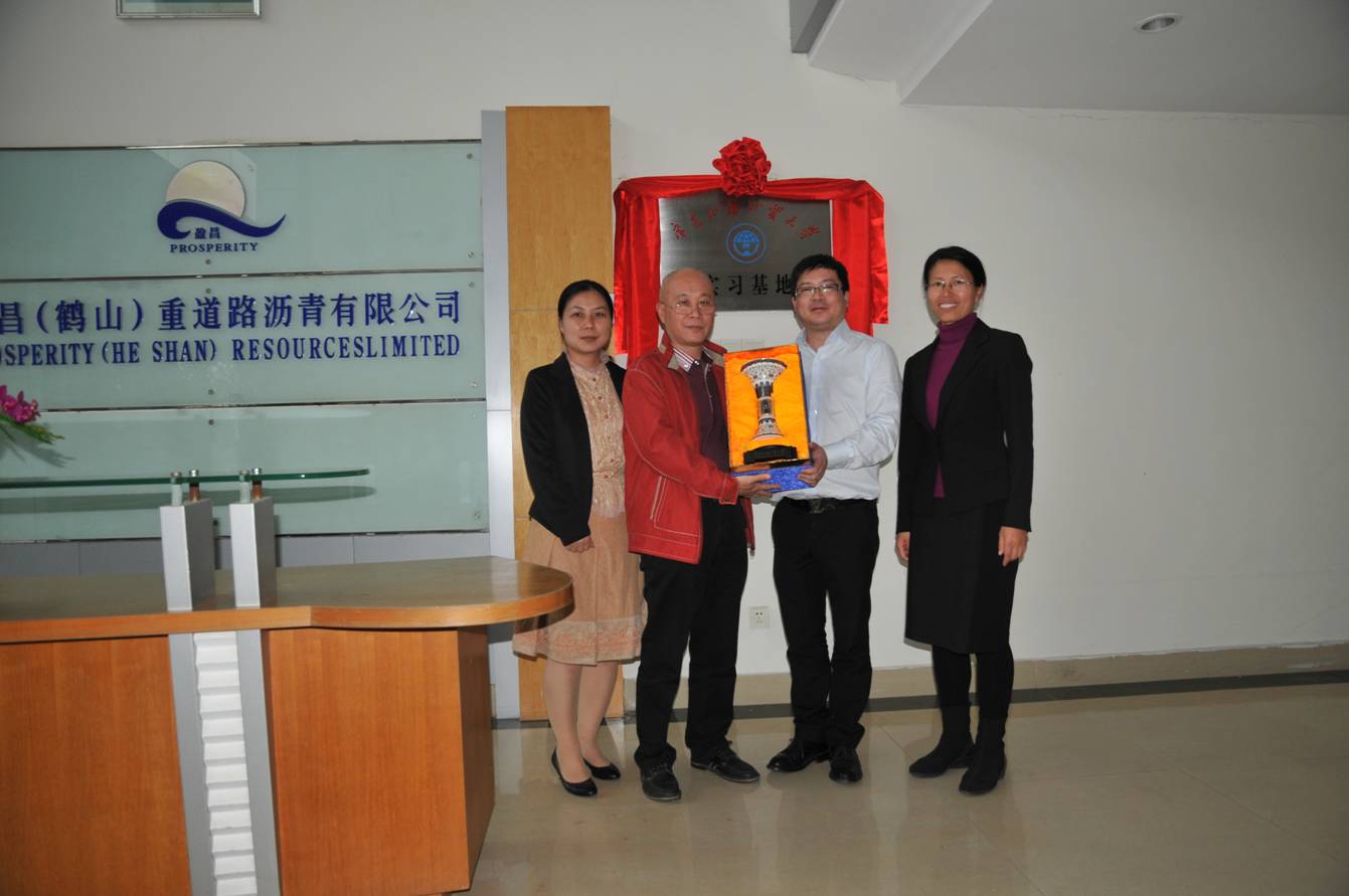 本网讯 3月24日,“bevictor伟德,伟德bv国际体育——盈昌(鹤山)重道路沥青有限公司实习基地挂牌仪式”及座谈会在盈昌(鹤山)重道路沥青有限公司举行。bevictor伟德88级校友盈昌(鹤山)重道路沥青有限公司董事长余飞、管理学院院长钟育赣院长、副院长董俊武、副院长常永胜,党委副书记罗海洋、市场营销系系主任吴清津、市场营销系王秀芝等出席了揭牌仪式。