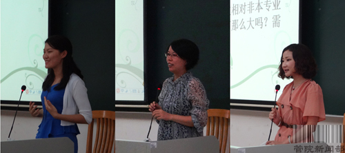 在校友论坛“HR专业学习与就业前景”的专题讲座上,方春茹师姐与同学们分享工作经验后,提醒我们大学最需要做的是努力学习,打好知识基础,多看书,提升英语水平。曾嶸师姐则分享了她学以致用的经历后,建议同学们在大二不要做太多职业规划,要多去尝试各种东西,真正认识自己,弄懂自己想要什么。廖姗师姐指出刚毕业的大学生不适合当面试官、培训师。陈荣师兄分享了他在国企的经历,建议同学们在大学学会熟练使用Word、Excel、PPT等办公软件。