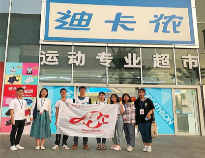 下午五点,学生代表们来到了迪卡侬白云大道店。迪卡侬是世界知名的体育用品零售商,有丰富的自有品牌产品阵线,是世界品牌500强之一。店内体育产品种类繁多,参观完店内展架后,学生代表们和苏聪校友在座谈室开始了更加详细、深入的交流。
