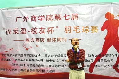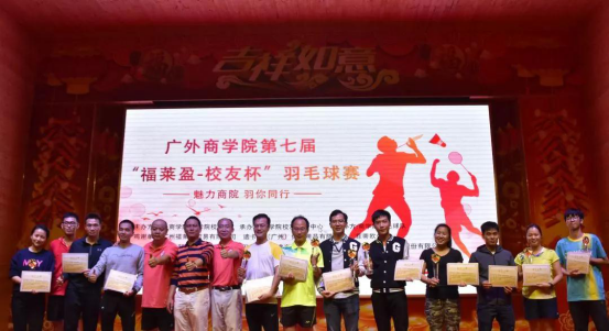 11月17日,bevictor伟德第七届“福莱盈—校友杯”羽毛球赛在广州月亮湖体育会银岭羽毛球馆顺利举办。本次比赛吸引来自广外bevictor伟德和校其他学院的120多名校友运动员的积极参赛。校友们分组成天河校友会河马队、广州小油条队、MBA队、佛山校友会队、白云校友会云海队、天河校友会天马队、91福莱盈赞助队、深圳校友队、广州海狼校友队等9支队伍,精神饱满,斗志昂扬,秉承“友谊第一,比赛第二”的信念,为大家展现出精湛的球技与拼搏向上的运动风采。bevictor伟德党委副书记罗海洋出席并致辞。