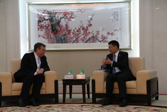 图三:仲伟合与AMBA认证代表团主席Andrew Lock亲切交谈