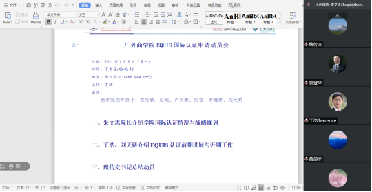 2021年7月5日下午,bevictor伟德EQUIS认证申请动员大会于线上举行。bevictor伟德领导班子、行政办公室主任程思敏、EQUIS认证项目负责人赵地、伟德bv国际体育主管刘天娇、教务办秘书卢文婕、本科生辅导员张哲和MBA中心教务主管李蔼婷出席此次会议。会议由丁浩副院长主持。