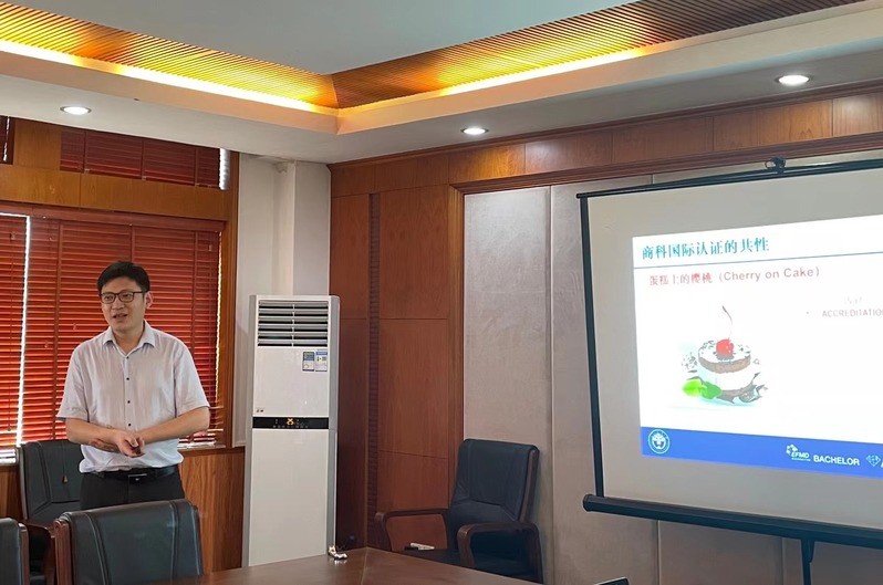按会议议程,首先,丁浩副院长详细介绍了AACSB、EFMD、AMBA&BGA、CAMEA等商科伟德bv国际体育体系,并指出伟德bv国际体育对商科教育的人才培养、学科专业平台建设、国际交流合作等有积极作用;他指出,伟德bv国际体育应是使命驱动的“闭环”构建,从战略、师资、学科、课程、学生、行政管理这六方面形成闭环,建设过程中要注重相关组织架构与功能的实现、注重相关制度的具体化、重视文档的整理与使用;其次他引用习近平总书记的重要讲话,认为应走中国特色的商科认证之路,在推进伟德bv国际体育的过程中强调中国自信。