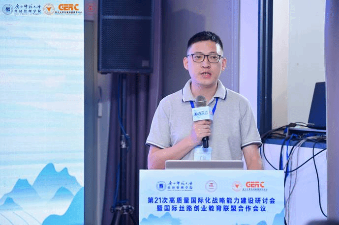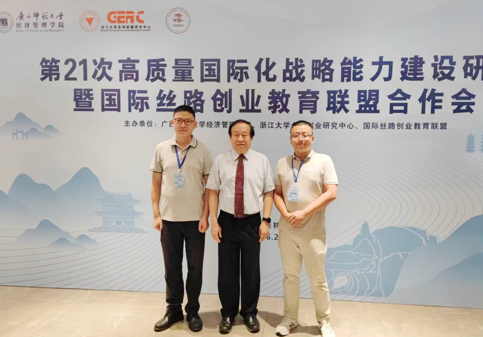 2023年6月24-25日,由广西师范大学经济管理学院、浙江大学全球创业研究中心、国际丝路创业教育联盟联合举办的第21次高质量国际化战略能力建设研讨会暨国际丝路创业教育联盟合作会议在桂林召开,来自30余所高校的70余位专家学者参加会议,会议由浙江大学人文社会科学资深教授、浙江省特级专家、浙江大学全球创业研究中心主任王重鸣主持。广外bevictor伟德副院长丁浩、MBA教育中心国际主管蒋健颖应邀参会。