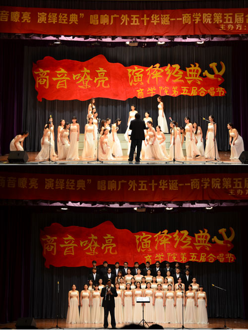 本次合唱节以广外五十周年校庆为契机,意在唱响广外五十华诞。此外,为了与国际化接轨,注重跨文化交流,本届合唱节在延续传统,演唱经典红歌的基础上,创新性地加入了英文歌曲合唱,充分体现学院学子的外语风采。