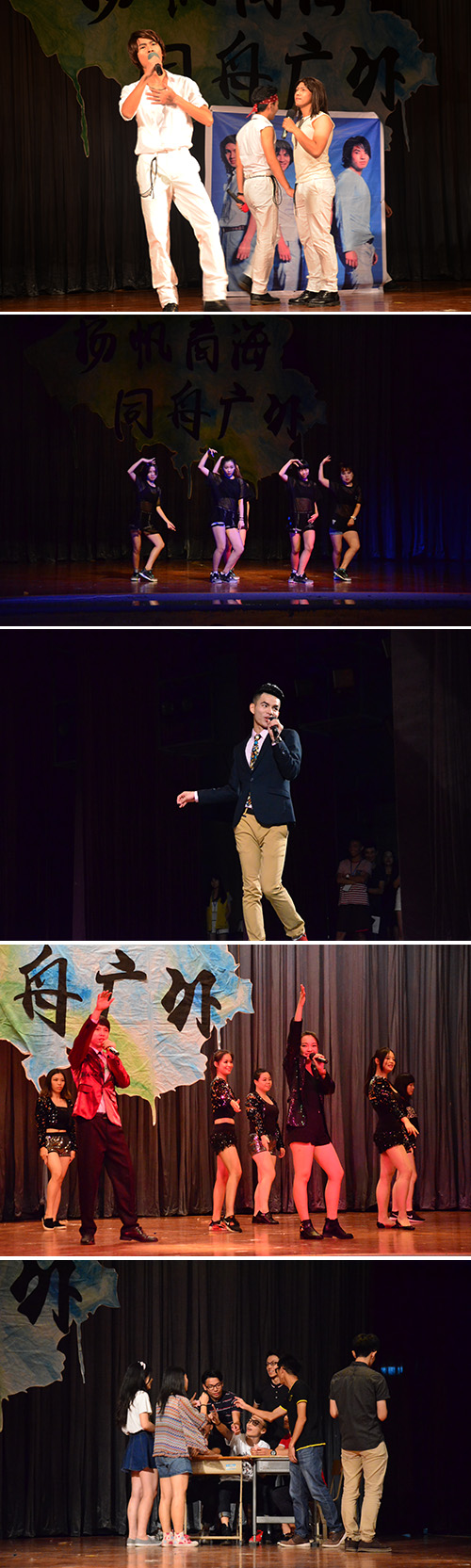 同时,本场晚会还有一大亮点——歌舞串烧。由工管1102班带来的《对面的女孩看过来》、《Monica》、《同桌的你》、《北京东路的日子》等歌曲串烧和由物流1103班带来的《送别》、《尽情摇摆》、《恋爱ing》、《匆匆那年》、《青春修炼手册》等歌舞表演都用风格迥异曲风和热情奔放的集体舞蹈体现了他们对青春的怀念、对母校的不舍和对同窗情谊的珍惜。其中一位师兄更是在合唱时真情流露,将不舍之情化作泪水,泪洒舞台。