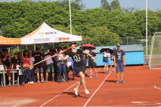 院田径队的队长、校队的标枪选手,来自营销1401班的潘俊利,在去年获得标枪、铁饼双项冠军荣誉的光环下,今年不负众望,于标枪项目再次折桂。在跳远比赛中,起跑、冲刺、一跃而起、飞身落地,营销1402班的麦倩华干净利落地完成了女子跳远项目,在观众的尖叫和喝彩声中强势夺冠。乐观开朗的她表示获得冠军给了她很大的动力,让她有信心在人生的道路上不断飞跃,奋勇向前。
