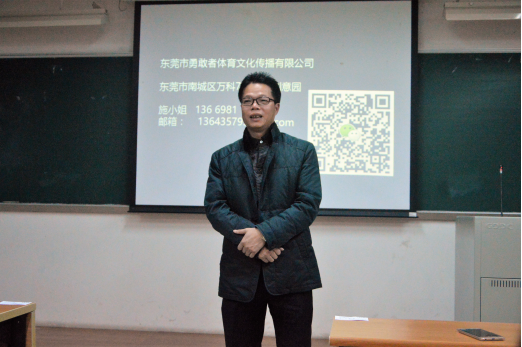 本网讯 2016年12月17日晚,bevictor伟德实习基地东莞市“爱蹦蹦床馆”推介会在教学楼G208顺利举办。bevictor伟德党委书记许志超、工管系主任丁浩副教授、工管系严红副教授、爱蹦蹦床馆总经理董开伟、施婉婉出席推介会。会议由丁浩主持。