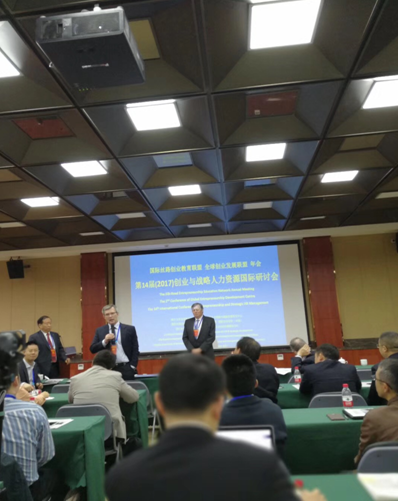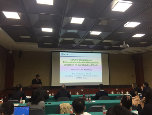10月23日-25日, 2017创业与战略人力资源国际研讨会暨第二届全球创业发展联盟年会在浙江大学召开,院长朱文忠教授、副院长袁登华教授和人力资源管理系主任安凡所教授应邀出席。朱文忠院长在研讨会上作了《GDUFS's Integration of Entrepreneurship with Management Education inthe Globalized World》的主题演讲。