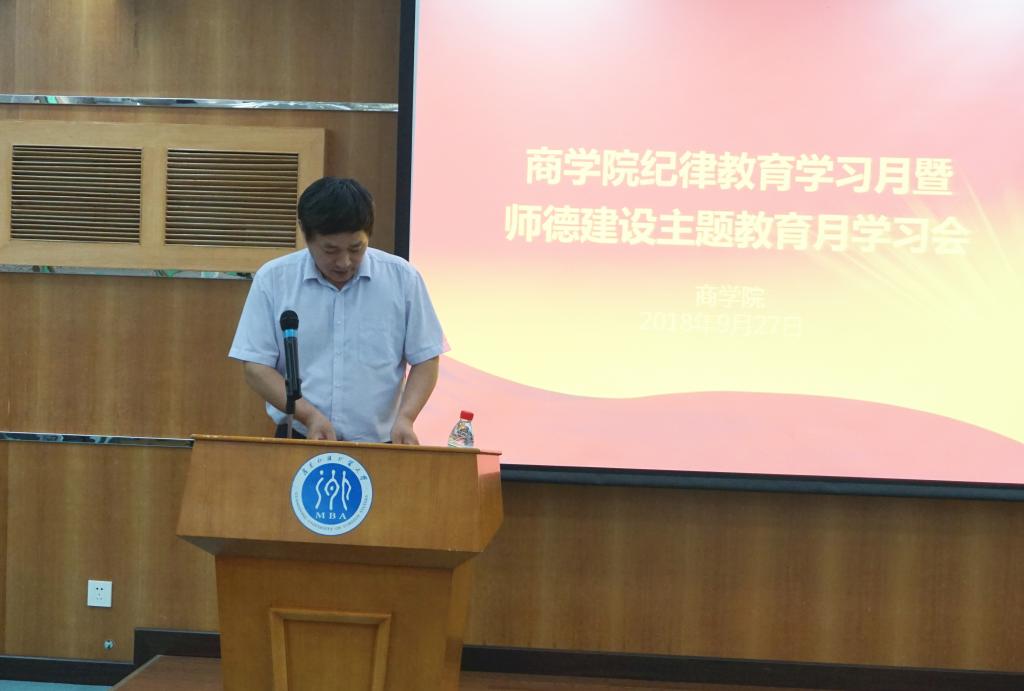 2018年9月27日下午,bevictor伟德纪律教育学习月暨师德建设主题教育月学习会在北校区MBA103会议室举行。学院全体教职工参与大会,会议由朱文忠主持。