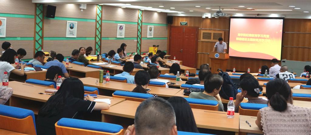 会上,院长朱文忠传达《关于开展2018年师德建设主题教育月活动的通知》《关于开展2018年纪律教育学习月活动的通知》精神,指出要弘扬高尚师德,潜心立德树人,要加强党的政治建设,营造良好政治生态。会上,朱文忠传达新时代全国本科教学工作会议精神,指出“高教大计、本科为本,本科不牢、地动山摇”,要坚持“以本为本”,推进“四个回归”,加快建设高水平本科教育、全面提高人才培养能力,造就堪当民族复兴大任的时代新人。同时,朱文忠根据新学期大学本科教育重点工作安排, 提醒做好新学期学院本科教学工作。