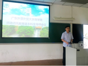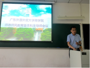 魏传文书记首先强调学院教师应自觉加强师德修养,严格遵守师德规范,坚持以德立身、以德立学、以德施教、以德育德,在师德师风建设过程中要规范言行,同时要注意规范上课内容,重视教材尤其是境外原版教材的使用,全面防范意识形态风险,规范教学秩序。