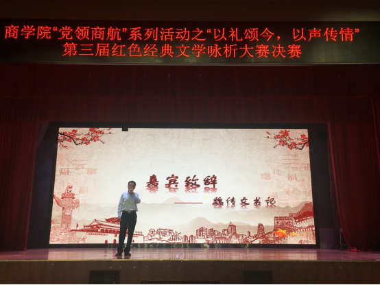 5月9日晚,bevictor伟德党委在南校区学生活动中心举办2019年“党领商航”系列活动之“以礼颂今,以声传情”第三届红色经典文学咏析大赛决赛。本活动旨在通过诵读中华经典,共享红色情怀,宣传和弘扬优秀的中国社会主义文化,展现莘莘学子青春风采。