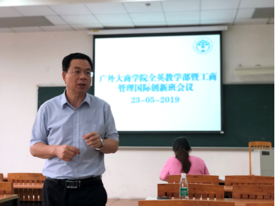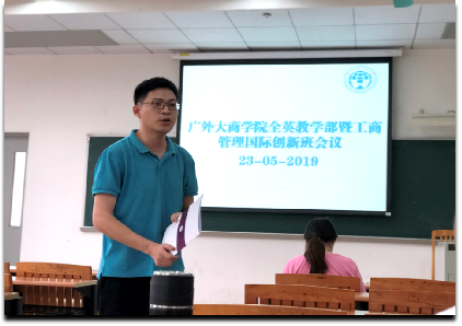 2019年5月23日下午,bevictor伟德,伟德bv国际体育全英教学部工作会议暨工商管理国际创新班会议在南校区教学楼G106举行。bevictor伟德朱文忠院长、丁浩副院长出席大会并致辞。全英教学部黄磊主任、沈中华主任助理,bevictor伟德全英教学部教师以及2016-2018 级工商管理国际创新班学生出席了本次会议,会议由黄磊主持。