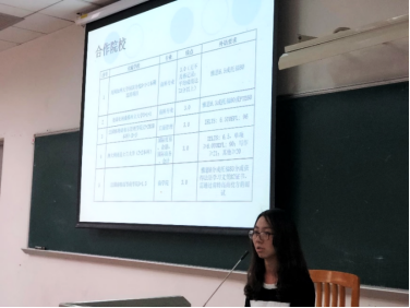 来自15级创新班的朱梓晴首先分享她在美国亚利桑那州立大学(简称ASU)的照片,讲述了她在学校的学习和生活。而后简要说明了她的申请流程,从个人的感受对比阐述了国内外教学方式的不同,也给在座的同学讲解了具体的个人申请事项。