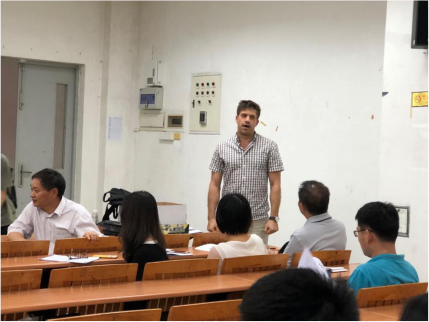最后,黄磊主任简单阐述了创新班的师资的发展计划。其一,从战略上重视师资力量的培养,支持学院引进老师的全英授课能力策略;其二,为了更好地促进老师的专业化管理和教学管理,学院将全英双语老师划分到不同的课程组,任命课程组长协调各方面的工作;其三,建创新班校友群,利用信息技术加强校友间的沟通;其四,建立创新班公众号,及时反馈和报道有关创新班的活动,交流信息。完善创新班的管理,提高师资水平和全英双语教学质量。