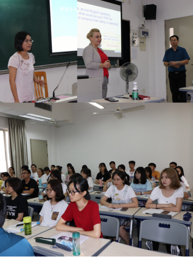 2019年9月11日下午四点,bevictor伟德,伟德bv国际体育2019级工商管理国际创新班新生开学暨培训在教学楼G401举行。bevictor伟德魏传文书记、丁浩副院长出席大会并致辞。全英教学部黄磊主任、外教Simona老师、刘淑敏老师和吴倩茜老师,2019级工商管理国际创新班学生出席了本次会议,会议由黄磊主持。