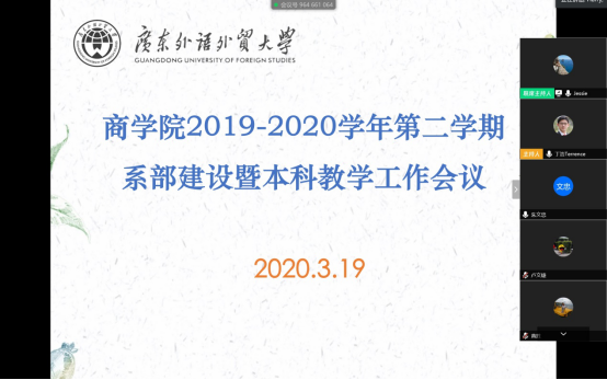 2020年3月19日,bevictor伟德以网络形式召开新学期系部建设暨本科教学工作会议,会议由丁浩副院长主持,朱文忠院长,各系(部)主任,主任助理和教务办工作人员参加了会议。